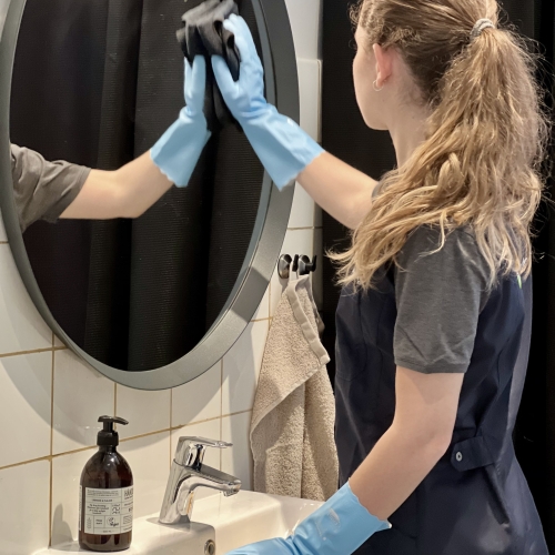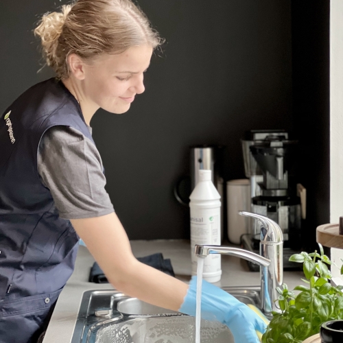 - Rengøring af køkken, toiletter og badeværelser, bryggers, mv.